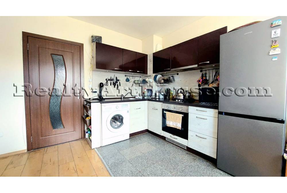 - Хол с кухненски бокс, трапезария, диван, газово котле.