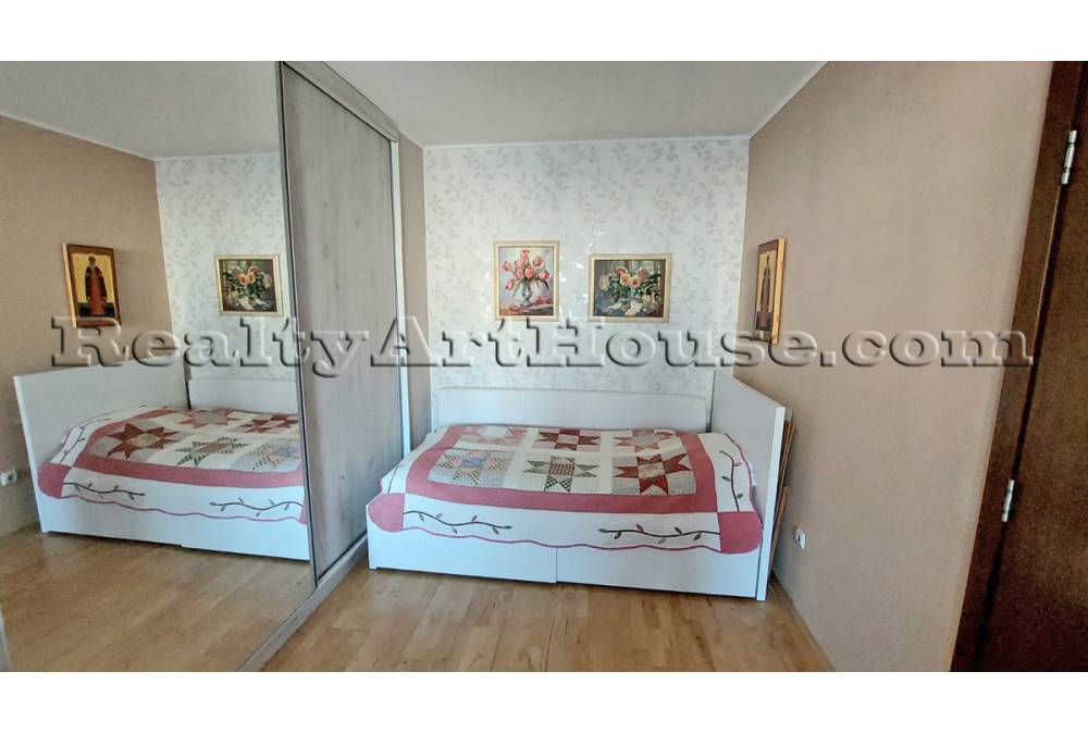 - Спалня с изход на тераса, гардероб, рафтове, две легла.