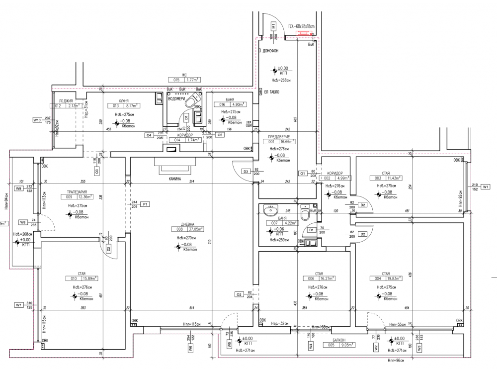 - баня (4,22 кв.м.) с тоалетна и душ с душ-кабина;