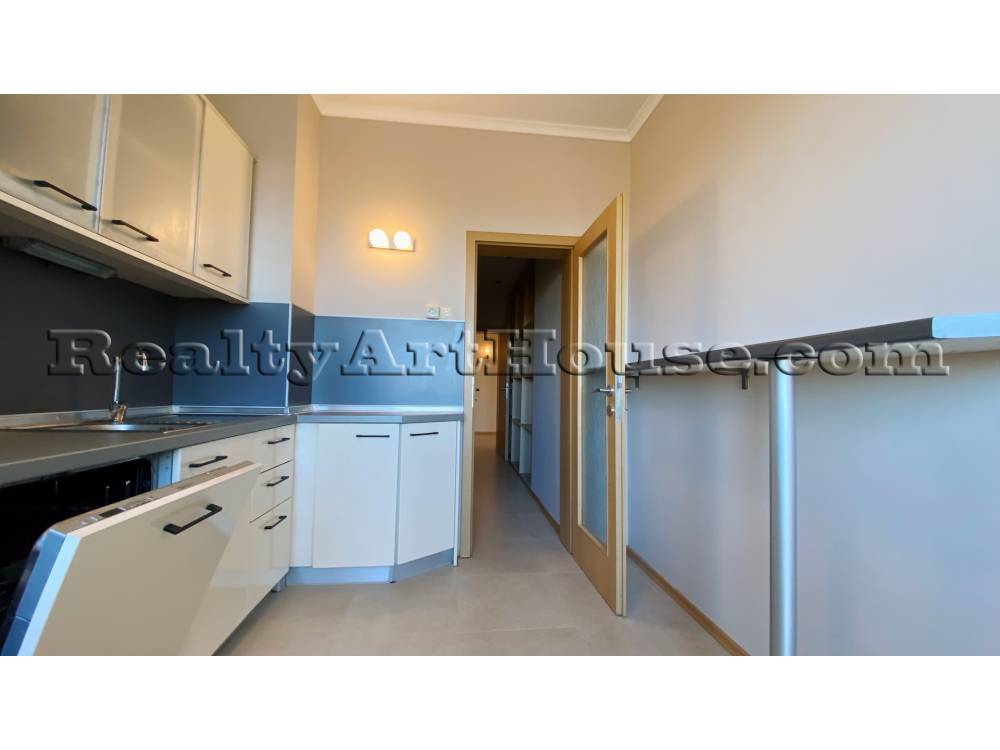 - обзаведена кухня (8,17 кв.м.) има западно изложение и изход на малка западна лоджия (2,13 кв.м.) с иглед към Брисова градина, напълно оборудвана със всички необходими уреди, в това число и съдомиялна машина,